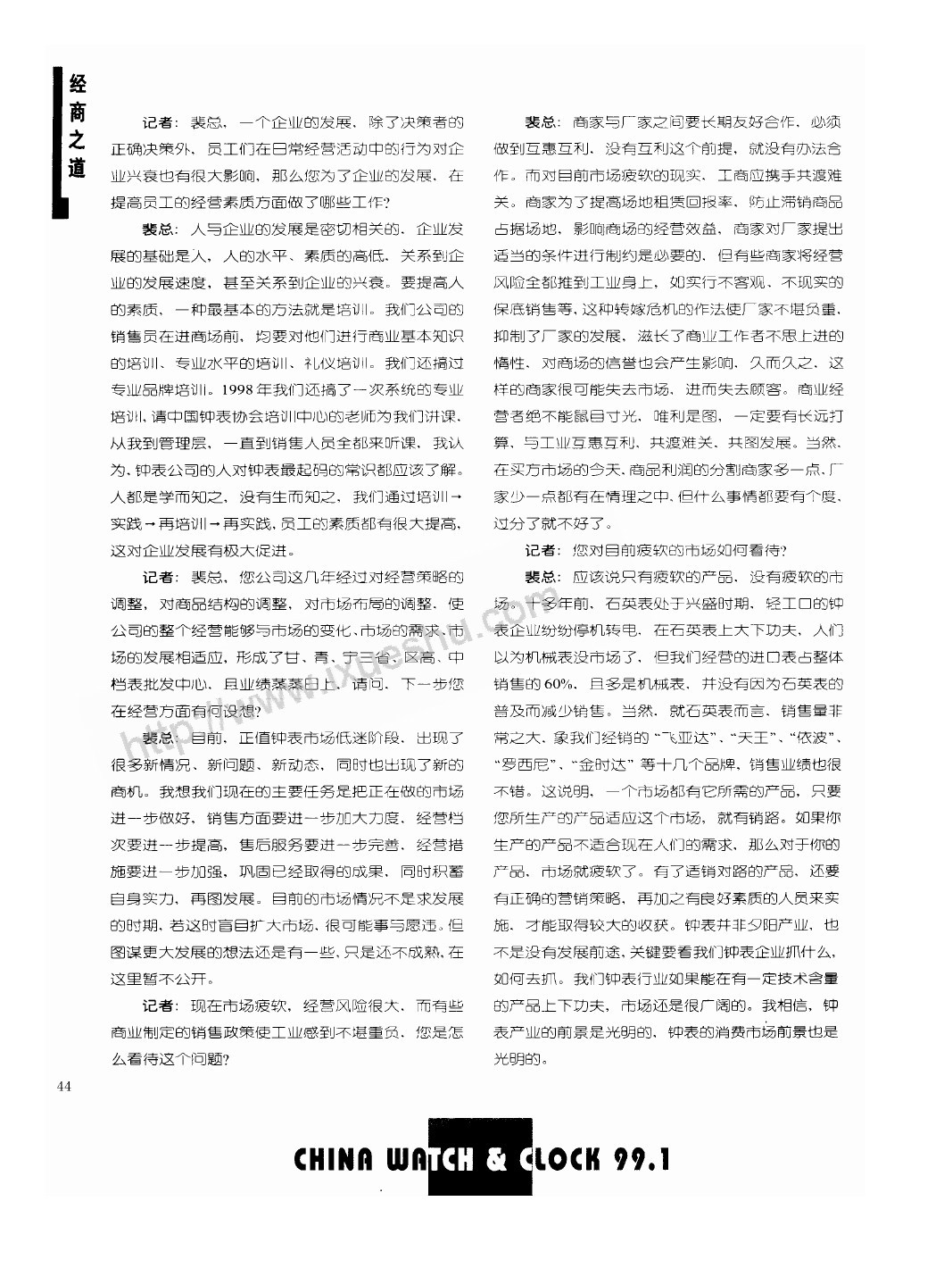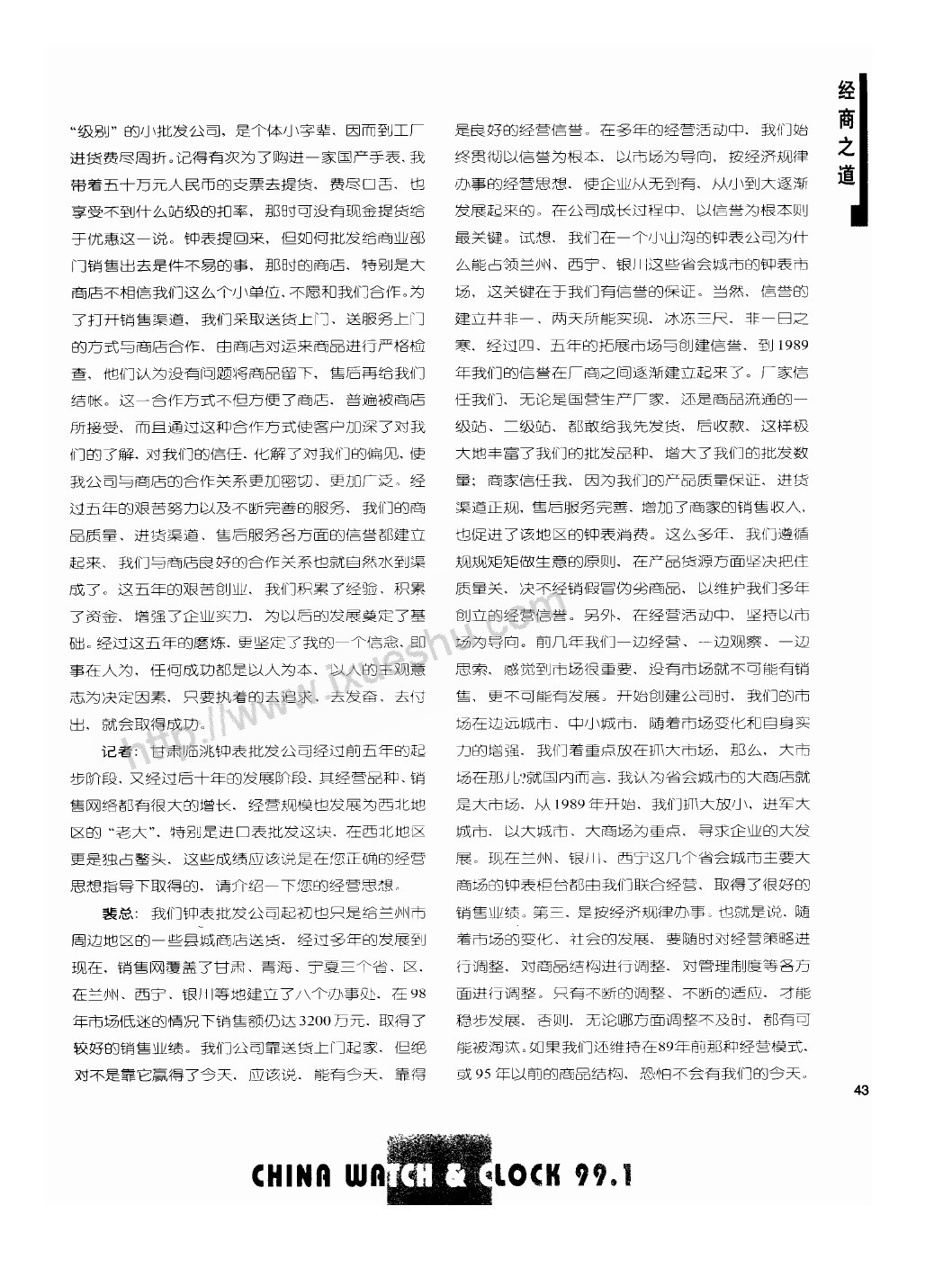 信念──企業(yè)騰飛的翅膀──與甘肅臨洮鐘表批發(fā)公司總經(jīng)理裴正江一席談