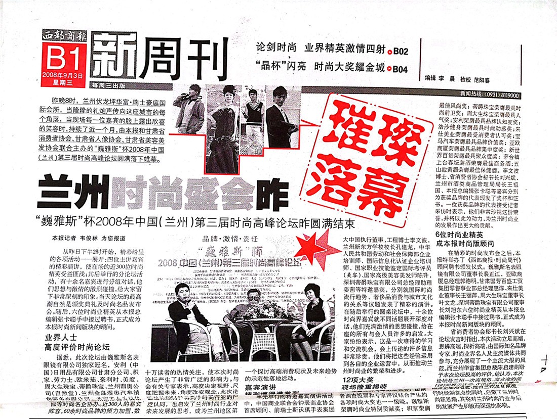 “巍雅斯”杯2008年中國(蘭州)第三屆時尚高峰論壇昨日圓滿結(jié)束