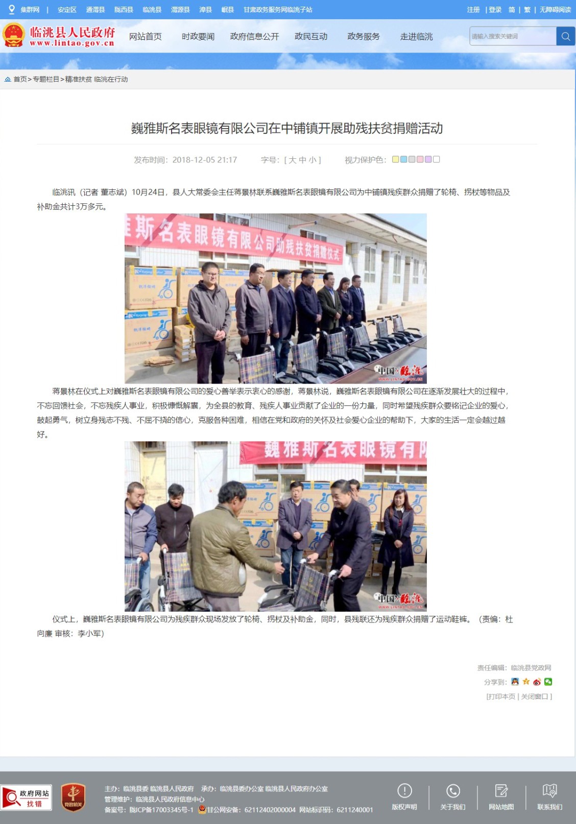 巍雅斯名表眼鏡有限公司在中鋪鎮(zhèn)開展助殘扶貧捐贈活動