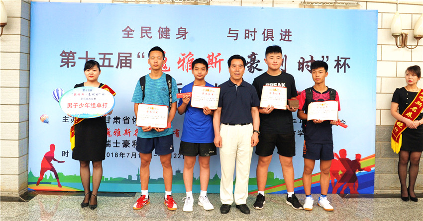 中國鐘表商會(huì)副會(huì)長(zhǎng)、甘肅省眼鏡協(xié)會(huì)會(huì)長(zhǎng)、甘肅省乒協(xié)副會(huì)長(zhǎng)、巍雅斯名表眼鏡有限公司董事長(zhǎng)裴正江、甘肅省乒乓球運(yùn)動(dòng)協(xié)會(huì)會(huì)長(zhǎng)韓力、原蘭州城市學(xué)院院長(zhǎng)王汝鋒、巍雅斯名表眼鏡有限公司副總裁裴明宏、甘肅省乒乓球運(yùn)動(dòng)協(xié)會(huì)秘書長(zhǎng)宋建農(nóng)、裁委會(huì)主任石振民、夲次大獎(jiǎng)賽裁判長(zhǎng)關(guān)欣出席頒獎(jiǎng)儀式并為獲獎(jiǎng)代表隊(duì)和運(yùn)動(dòng)員頒獎(jiǎng)。