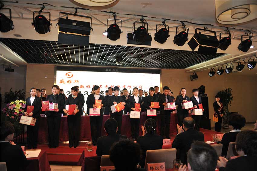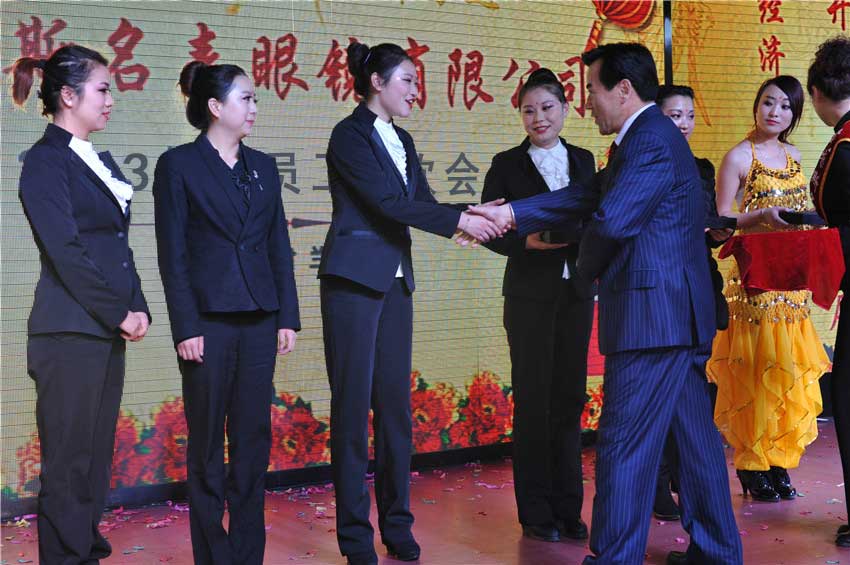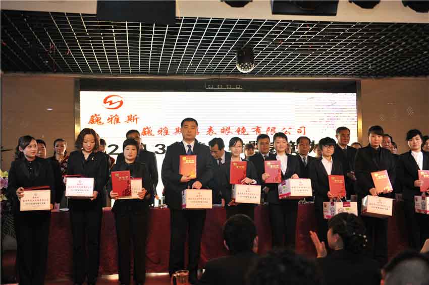 在總結(jié)暨表彰大會(huì)上,巍雅斯名表眼鏡有限公司總裁就2013年各個(gè)分公司和部門的各項(xiàng)情況做了總結(jié),對(duì)2014年的各項(xiàng)工作提出了規(guī)劃及要求。并指出:在過去的2013年雖然受整體經(jīng)濟(jì)環(huán)境的影響,但巍雅斯名表眼鏡有限公司的各項(xiàng)業(yè)績(jī)均取得了預(yù)期的目標(biāo)。相信2014年,在公司上下的團(tuán)結(jié)努力下,將會(huì)取得更輝煌的成就。總結(jié)暨表彰大會(huì)隨后表彰了在2013年涌現(xiàn)出的33名“先進(jìn)工作者”及4個(gè)“先進(jìn)集體”。在隨后舉行的2013年度員工聯(lián)歡會(huì)上,來自各個(gè)分公司(分部)選送的精彩聯(lián)歡節(jié)目和幸運(yùn)抽獎(jiǎng)為所有的參會(huì)人員帶來了歡樂,將聯(lián)歡會(huì)的氣氛推向了高潮。