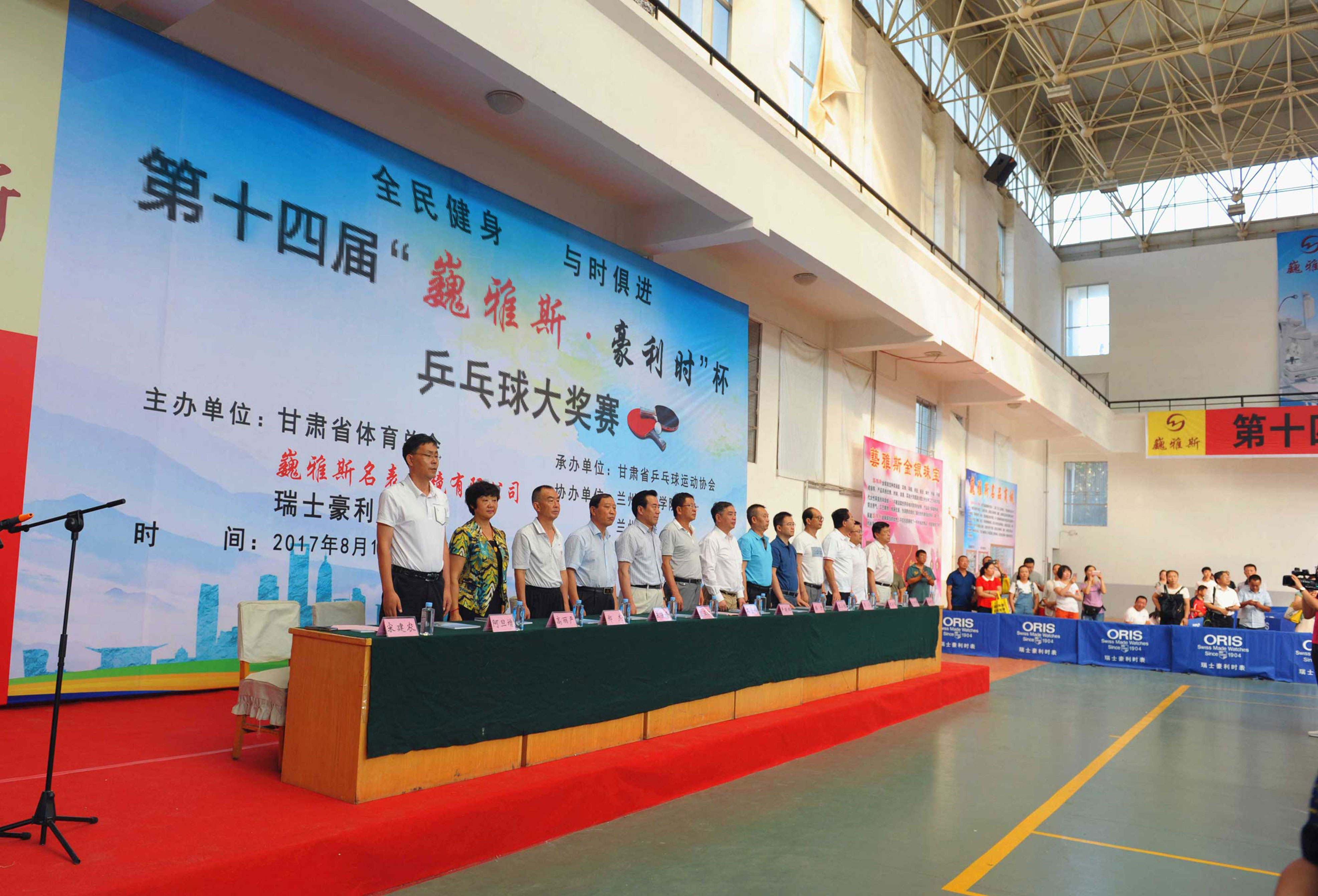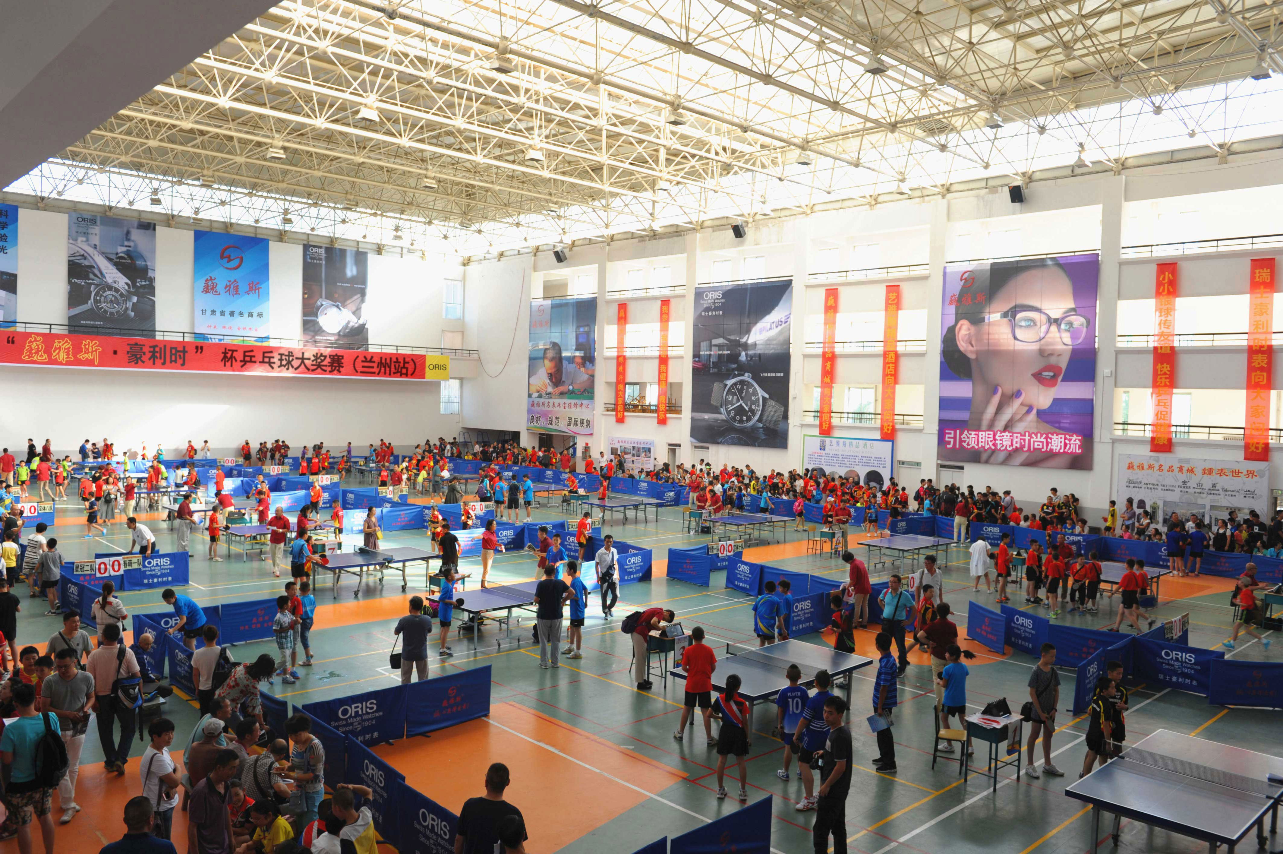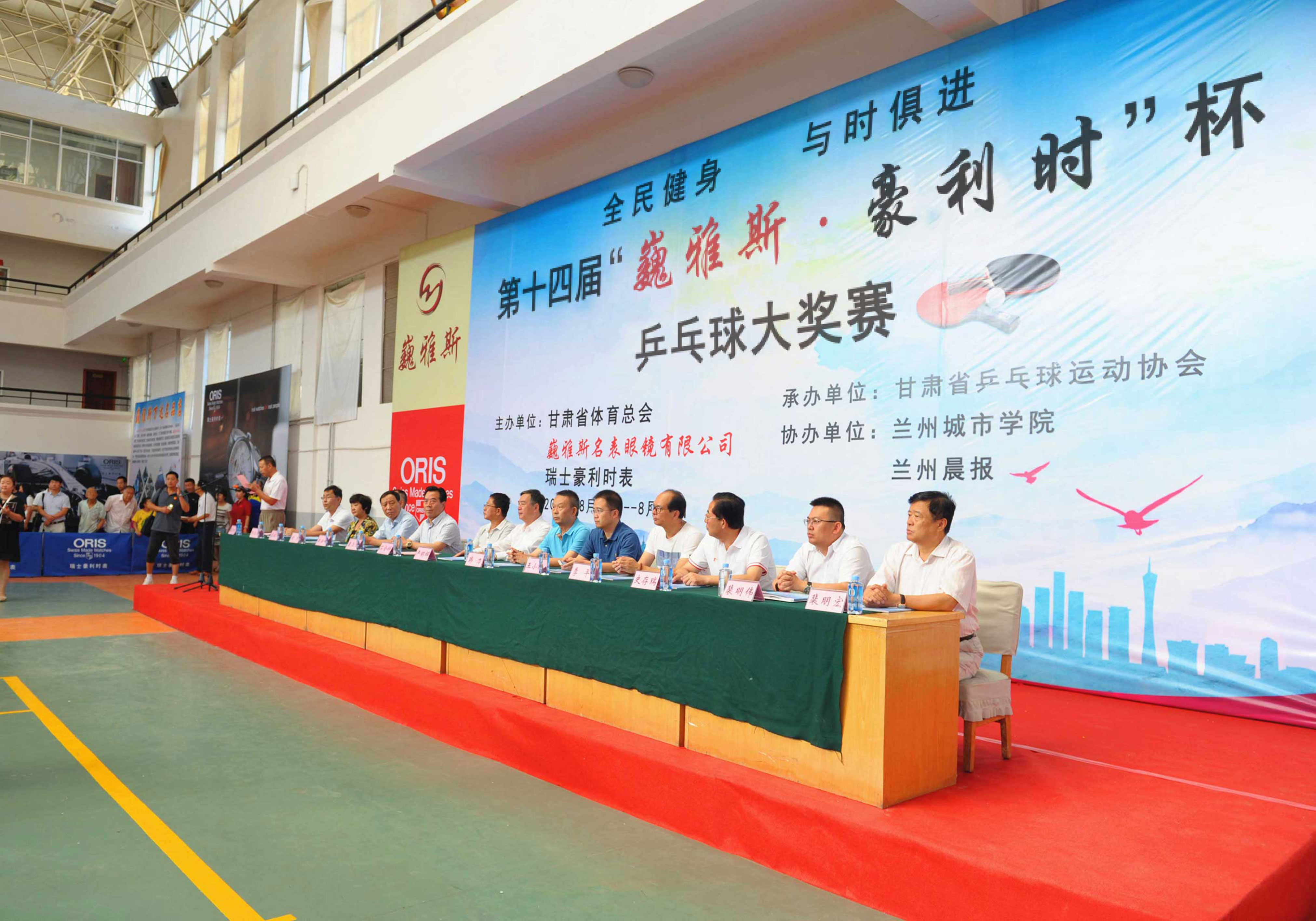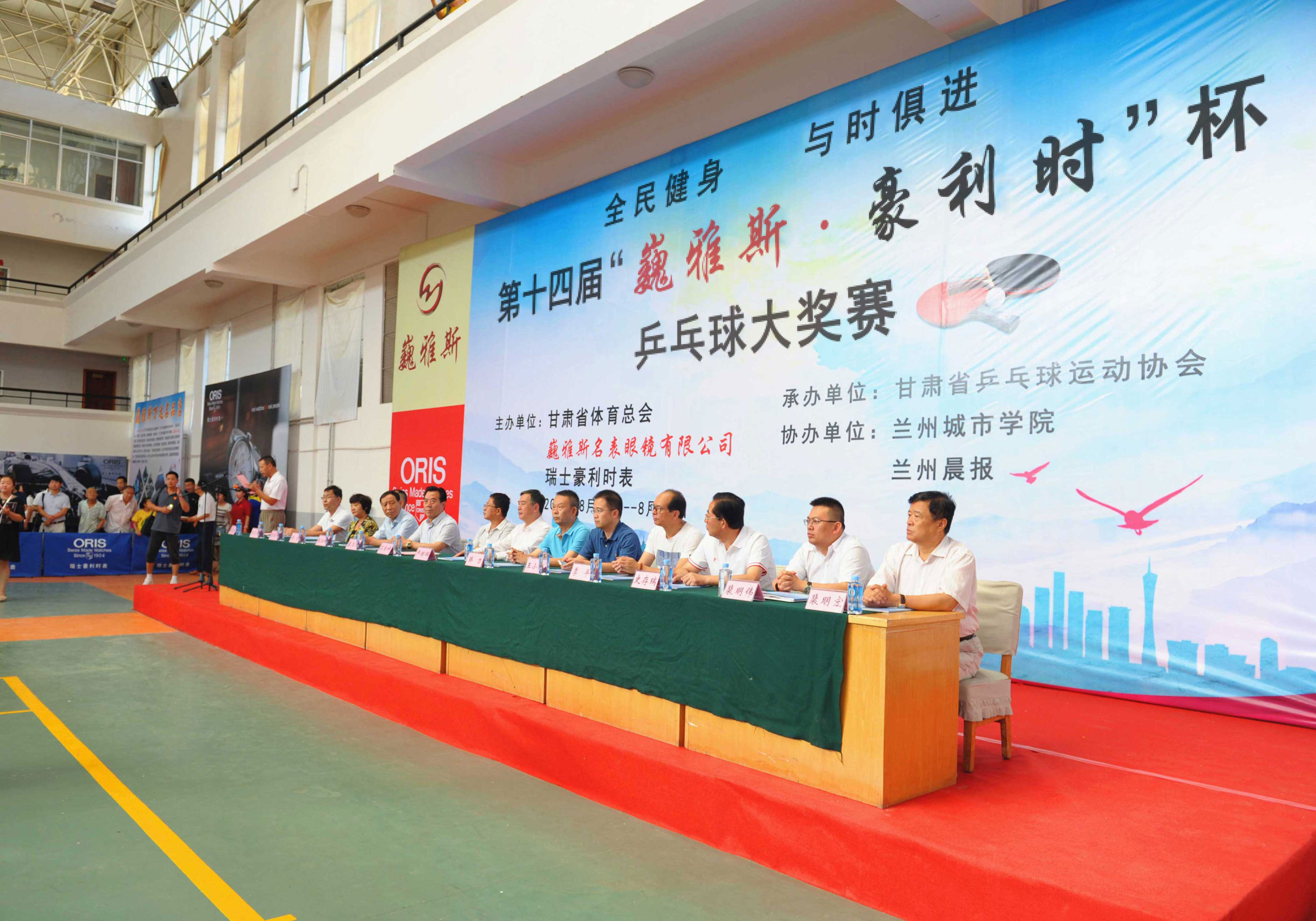8月16日上午,由巍雅斯名表眼鏡有限公司、瑞士豪利時表主辦,甘肅省乒乓球協(xié)會承辦,蘭州城市學院、蘭州晨報協(xié)辦的“全民健身,與時俱進”第十四屆“巍雅斯?豪利時”杯乒乓球大獎賽(蘭州站)在蘭州城市學院培黎校區(qū)體育館拉開帷幕。來自90個俱樂部,250多支代表隊的1158名運動員,參加所在組別的團體和單打比賽,在享受乒乓快樂的同時,向 110多個獎項展開激烈角逐,向高達近8000元的冠軍大獎發(fā)起沖擊。