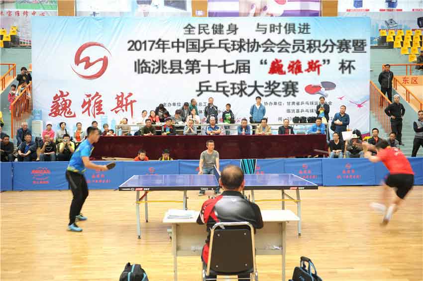 2017年中國(guó)乒乓球協(xié)會(huì)會(huì)員積分賽暨第十七屆臨洮縣“巍雅斯”杯乒乓球大獎(jiǎng)賽,經(jīng)過(guò)三天緊張激烈的角逐,各個(gè)組別的男女團(tuán)體和單打別名次全部產(chǎn)生。9月24日下午,進(jìn)行了本次比賽極為精彩的成年男子組冠亞軍決賽,并舉行了頒獎(jiǎng)儀式。