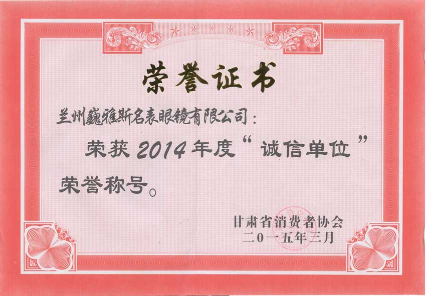 近日,蘭州巍雅斯名表眼鏡有限公司再度被甘肅省消費者協(xié)會授予“誠信單位”稱號。憑借著優(yōu)質(zhì)的服務(wù)和較高的顧客評價,蘭州巍雅斯名表眼鏡有限公司已是連續(xù)多年蟬聯(lián)這一殊榮!