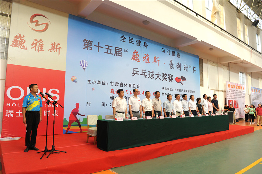 中國鐘表商分會副會長、甘肅省眼鏡協(xié)會會長、甘肅省乒乓球運動協(xié)會副會長、巍雅斯名表眼鏡有限公司董事長裴正江,瑞士豪利時表中國區(qū)總經(jīng)理嚴(yán)明輝先生及有關(guān)領(lǐng)導(dǎo)、運動員、裁判員、教練員、工作人員一起參加了簡樸但氣氛熱烈的大獎賽開幕式。