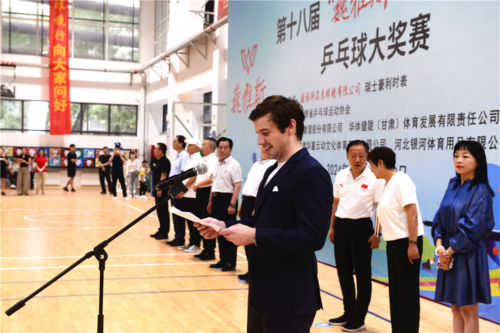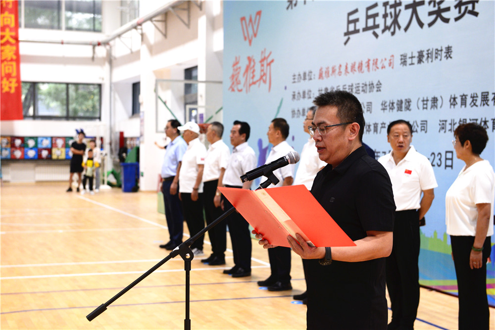 中國鐘表商分會副會長、甘肅省眼鏡協(xié)會會長、甘肅省乒乓球運(yùn)動協(xié)會副會長、巍雅斯名表眼鏡有限公司董事長裴正江,瑞士豪利時表大中華區(qū)總裁菲利普·拉德納,豪利時中國總經(jīng)理章蔚及有關(guān)領(lǐng)導(dǎo)、運(yùn)動員、裁判員、教練員、工作人員一起參加了簡樸但氣氛熱烈的大獎賽開幕式。