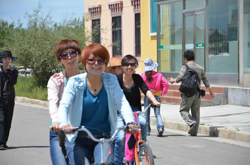 青海湖,像一顆珍珠鑲嵌在祖國(guó)西北壯美大地上,閃耀著神話般的色彩,帶給我們無限的遐想。2011年7月蘭州巍雅斯全體員工終于踏上了青海湖之旅,一路上大家抑制不住內(nèi)心的喜悅,歡聲笑語不斷。走進(jìn)青海湖,大家都被眼前美麗的風(fēng)景所折服,再看湖水的顏色,近處是綠色,遠(yuǎn)一點(diǎn)變成了墨綠,再遠(yuǎn)變成了淺藍(lán),更遠(yuǎn)是與天一樣的蔚藍(lán),如此美妙的景色也許只有在此地才能感受到吧!看,大家在湖邊盡情的拍照留影,就足以說明對(duì)青海湖的喜愛之情。第二天的目的地是土族風(fēng)情園,在當(dāng)?shù)貙?dǎo)游的講解中大家對(duì)土族的風(fēng)俗習(xí)慣有了大致的了解,這個(gè)能歌善舞的民族給我們帶來的精彩表演,讓大家在歡笑聲中渡過了這次美好而難忘的旅行。