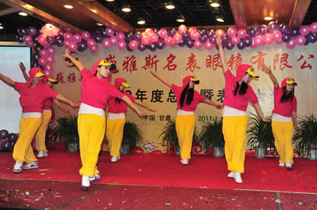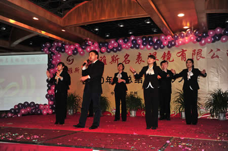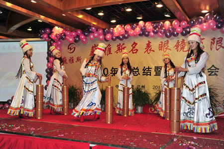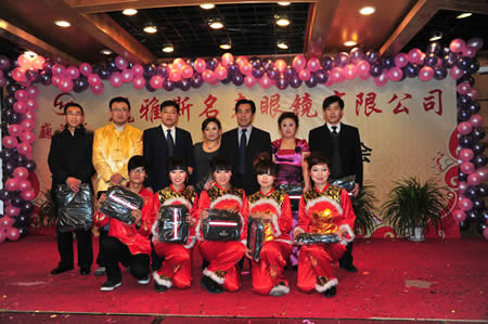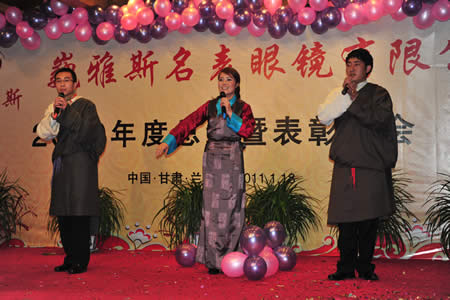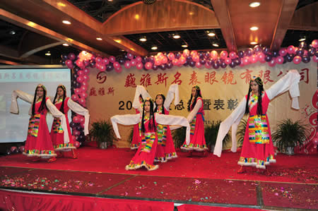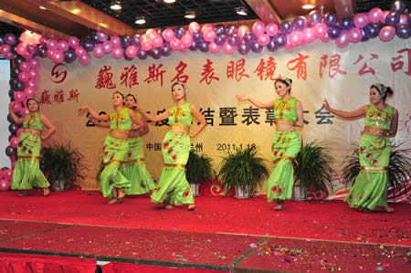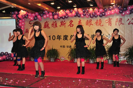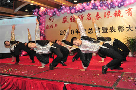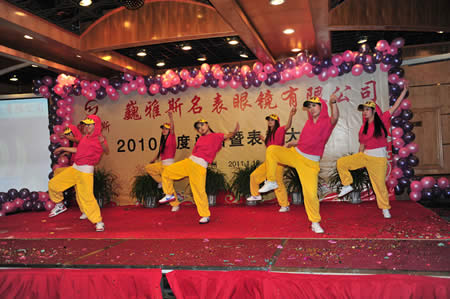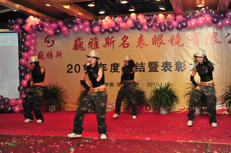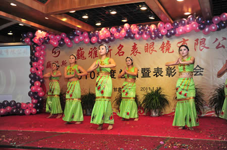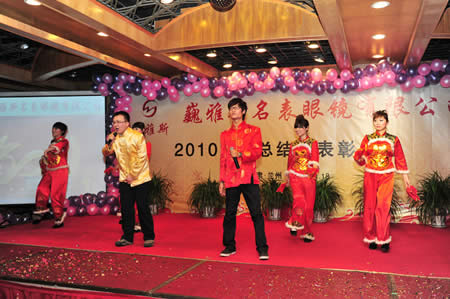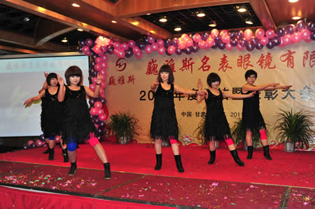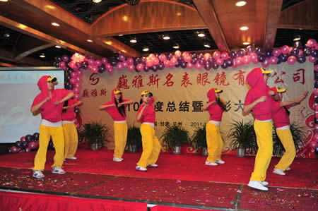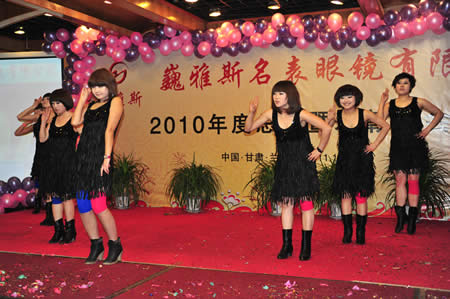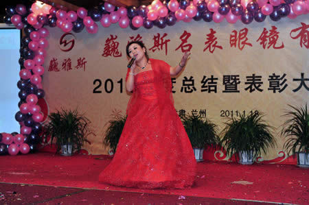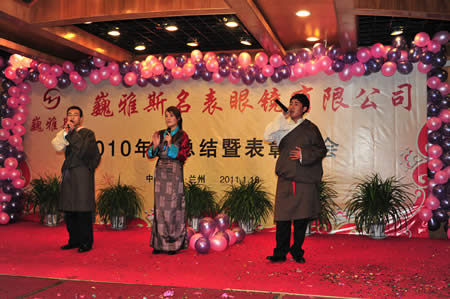 2011年1月18日,巍雅斯名表眼鏡有限公司2010年度總結(jié)暨表彰先進(jìn)大會(huì)在蘭州錦江陽(yáng)光酒店舉行,來(lái)自西安、銀川、西寧、拉薩、天水等地的部分員工240多人歡聚一堂,共敘友誼、共商發(fā)展,會(huì)餐后舉辦了豐富多彩的聯(lián)歡晚會(huì)。前來(lái)走訪的以經(jīng)營(yíng)古馳、迪奧、BOSS、阿瑪尼等高端眼鏡品牌為主的意大利霞飛諾集團(tuán)中國(guó)區(qū)總裁雅各布(Jacopo)先生及日本尼康鏡片西北區(qū)業(yè)務(wù)經(jīng)理張海青先生也興致勃勃的參加了晚宴和聯(lián)歡晚會(huì)。