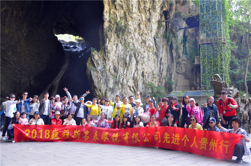 貴州的名山勝景,造就了“爽爽的貴州、避暑的天堂”,走進貴州綠水青山帶來的清新空氣無不讓人心曠神怡,這是巍雅斯名表眼鏡有限公司2017年度先進工作者之旅的目的地。來自臨洮、蘭州、西安、銀川、西寧等公司的優(yōu)秀工作者相聚在美麗的貴州,在熱情好客的貴州導(dǎo)游帶領(lǐng)下,大家在一路歡聲笑語中游覽了著名的地球腰帶上的綠寶石-荔波小七孔、天下第一苗寨—西江千戶苗寨、中國四大名著西游記的取景地,天星橋、陡坡塘瀑布、中華第一瀑-黃果樹瀑布、中國AAAAA級風(fēng)景名勝區(qū)-龍宮,中國規(guī)模較大的城市森林公園-黔靈公園,每走到一處當(dāng)?shù)氐拿矫?,讓人仿佛感覺走在畫卷中,流連忘返。游玩美景美景的同時又體驗了舌尖上的美味-凱里酸菜魚,貴陽腸旺面、絲娃娃等一系列美食,豐富的美食讓大家大飽口福。飯后欣賞了當(dāng)?shù)鬲氂?、純樸的民族舞蹈及歌聲,體驗帶有民族特色的祝酒歌舞。
